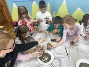 Učenici 2.c razreda povezali su nastavne sadržaje iz Prirode i društva s izvannastavnom aktivnošću- Domaćinstvom. Nakon što su naučili obilježja zime, odlučili smo zajedno pomoći pticama stanaricama u pronalasku hrane u zimskim uvjetima. Učenici su sudjelovali u aktivnosti izrade hranilice za ptice, a koristili smo lako dostupne prirodne materijale- češere, kikiriki maslac i druga prirodna mastila i sjemenke. S velikim su zanimanjem i veseljem sudjelovali u svim fazama izrade, a završene hranilice učenici su s roditeljima objesili na stabla u prirodi te pratili dolazak gladnih ptičica. Učenici su uspješno razvili osjećaj odgovornosti, empatije te svijest o očuvanju prirode, a na ovaj su način sudjelovali i u aktivnostima škole na zaštiti okoliša i u suradnji škole sa zajednicom.
